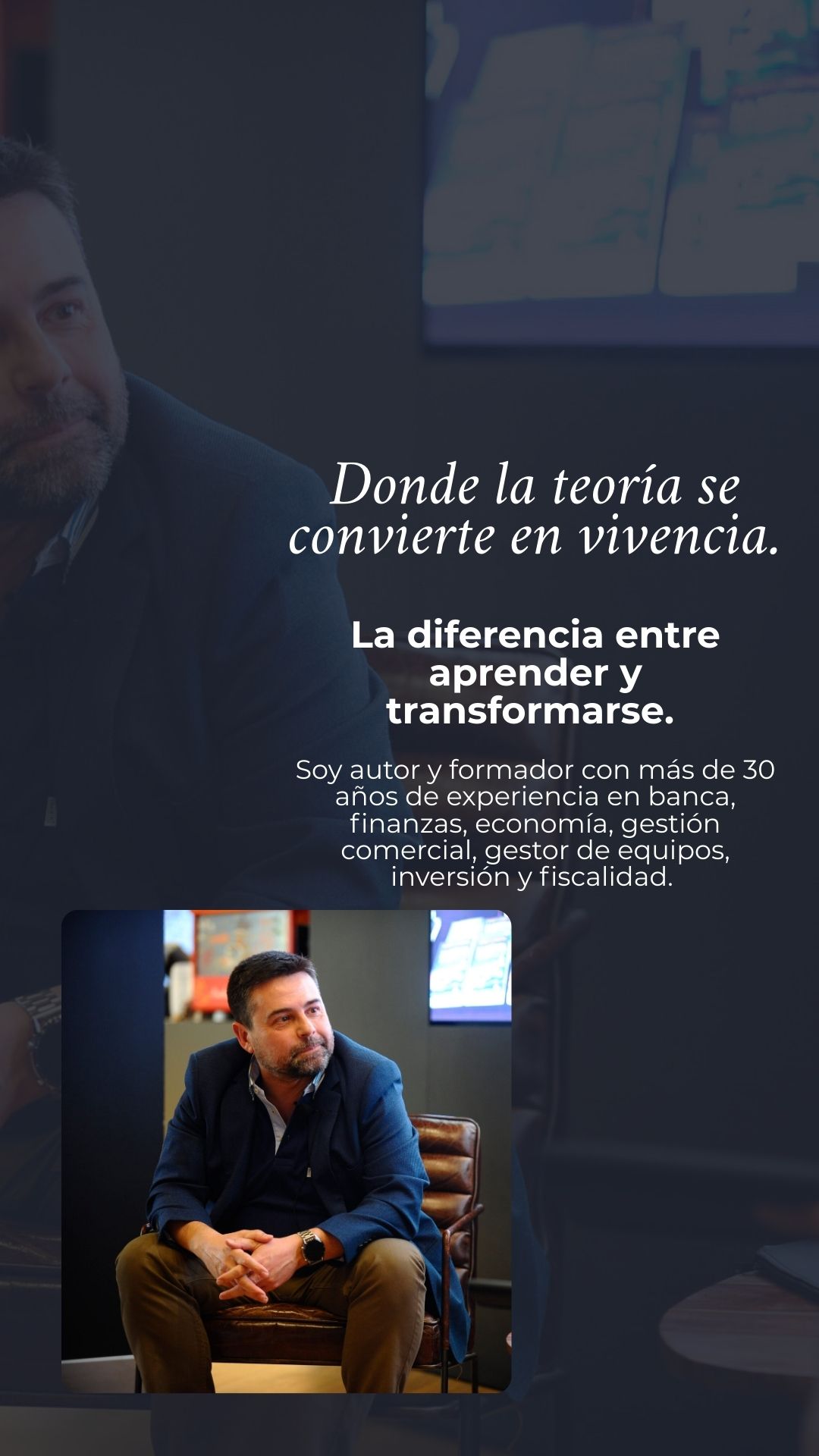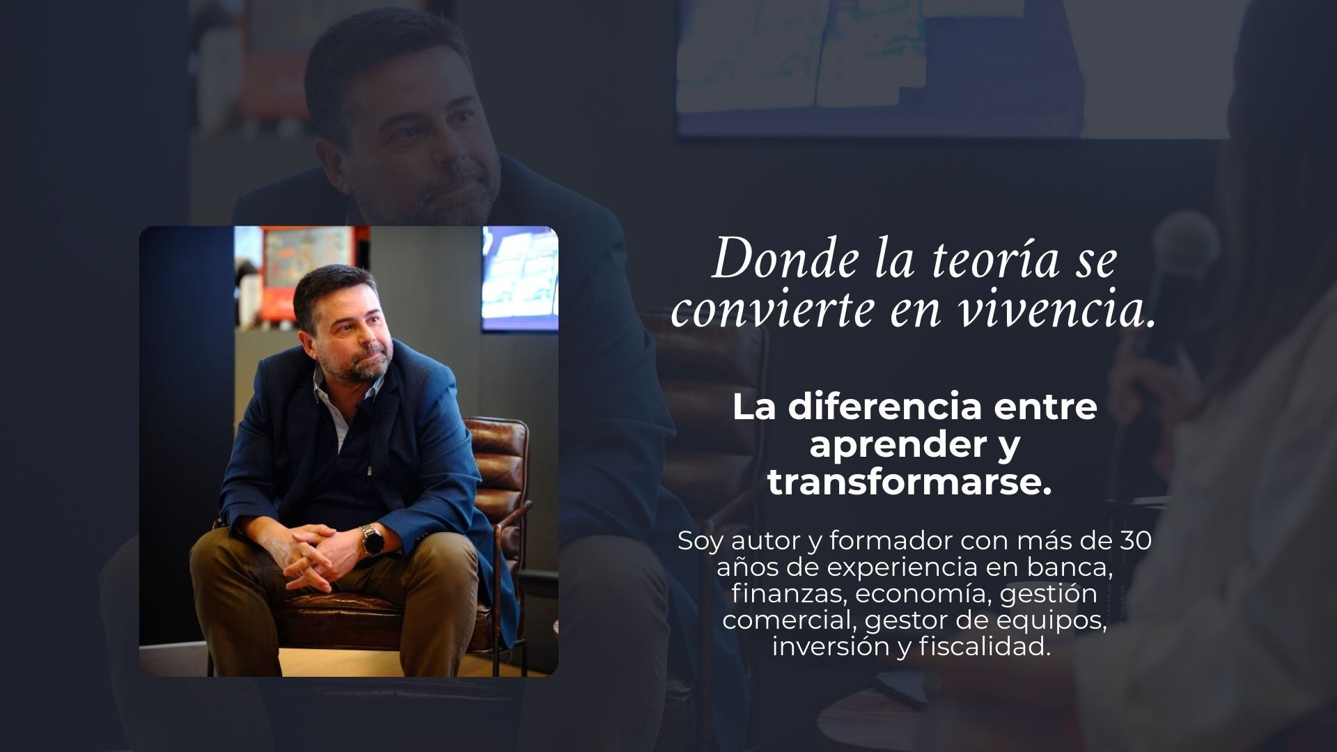 Y junto a esa vocación de acompañar, vive otra pasión que nunca me ha abandonado: la formación. Enseñar lo que sé, compartir lo aprendido en más de tres décadas de experiencia en finanzas, economía, gestión y vida. Formar, para mí, no es impartir teoría: es iluminar caminos, entregar herramientas reales y ayudar a que cada persona descubra su propia manera de avanzar.